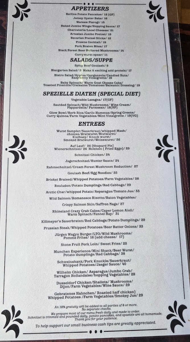 As you approach, you're welcomed by a beautiful old-world decor that sets the tone for an unforgettable dining experience. Guests have raved about the rich flavors on the menu, highlighting standout dishes such as the giant pork shank and venison cherry sausage, known for their mouthwatering taste. The jumbo pretzel paired with beer cheese has become a favorite among regulars, promising a delightful starter for any meal.